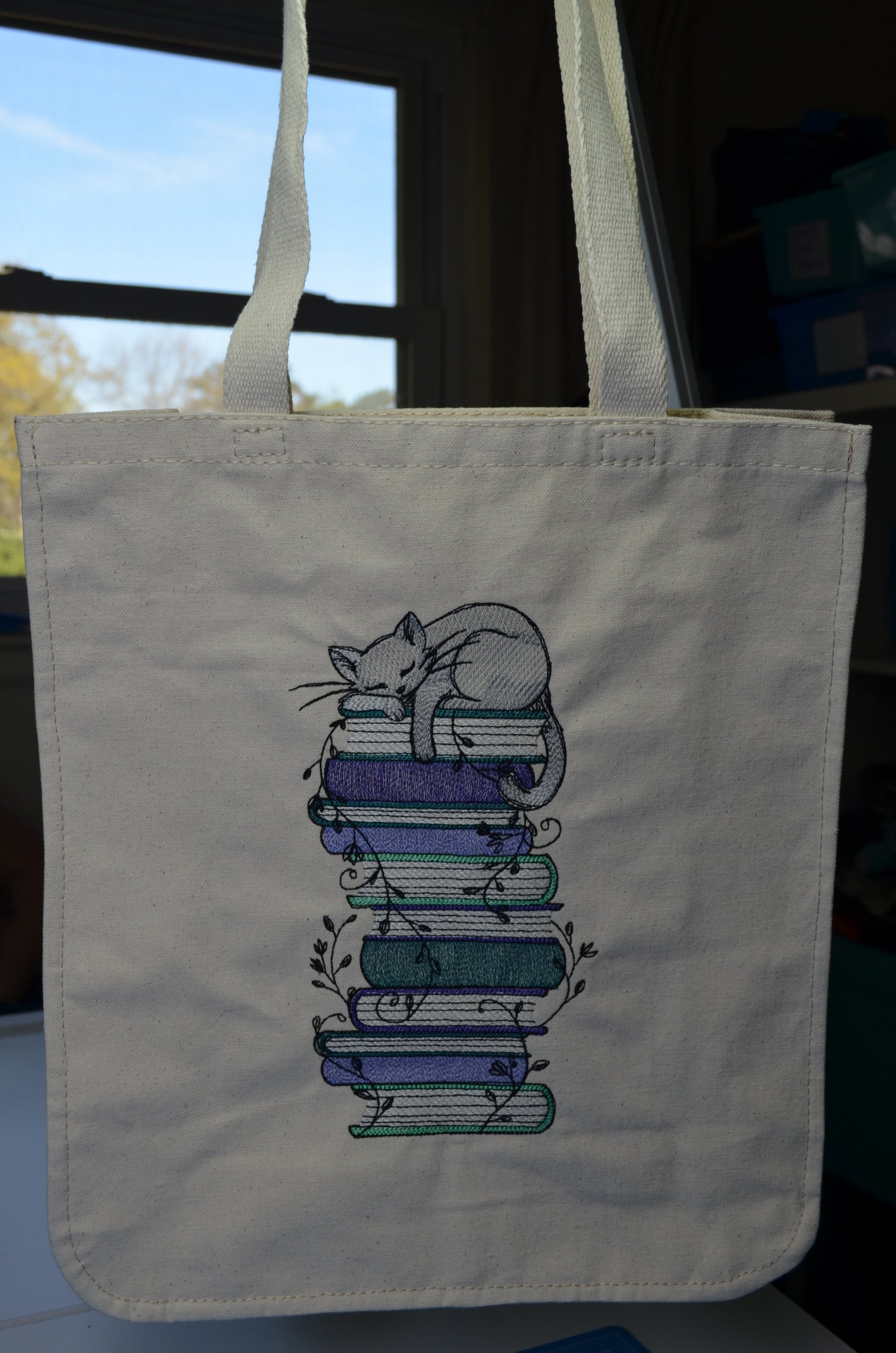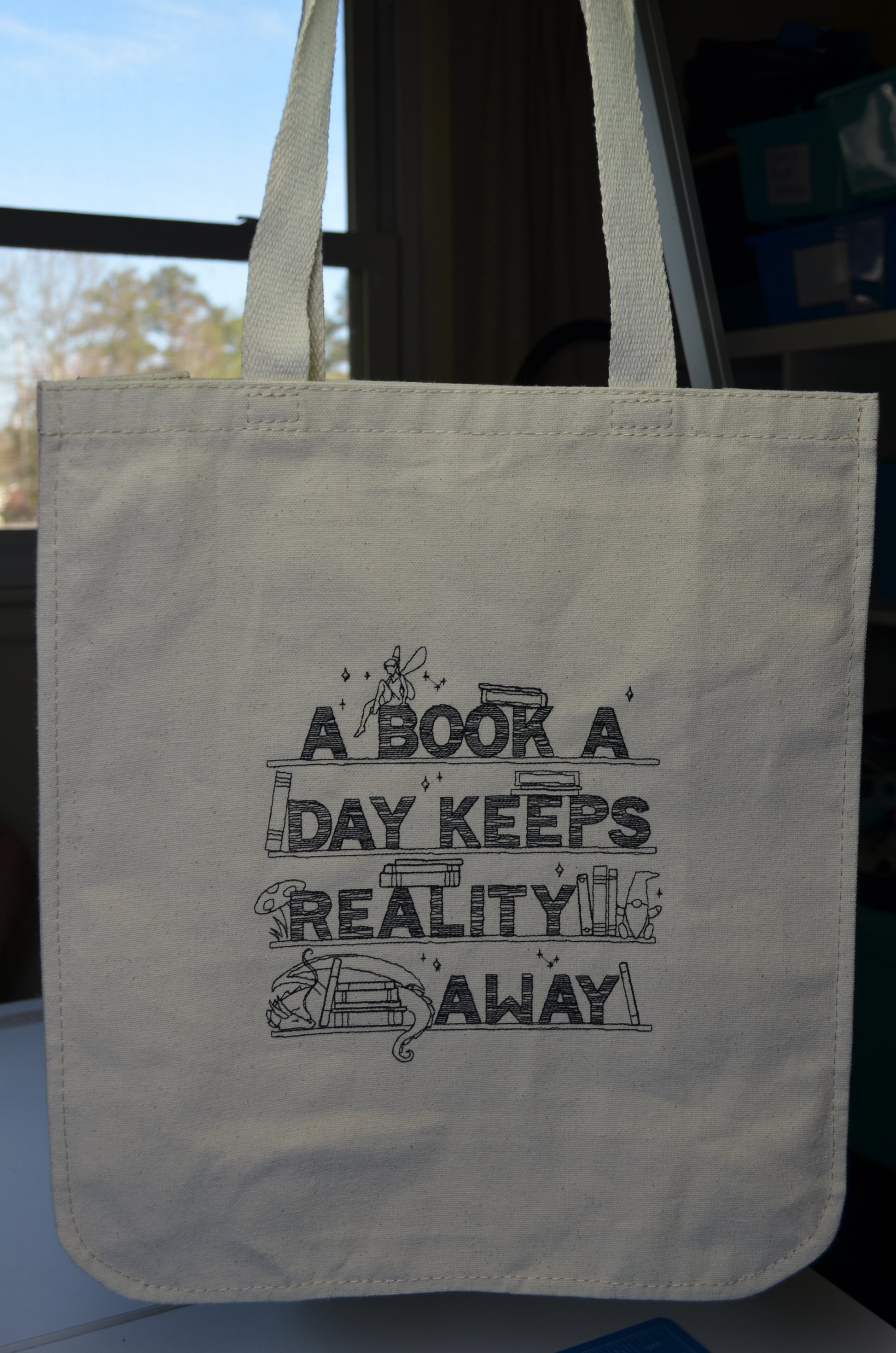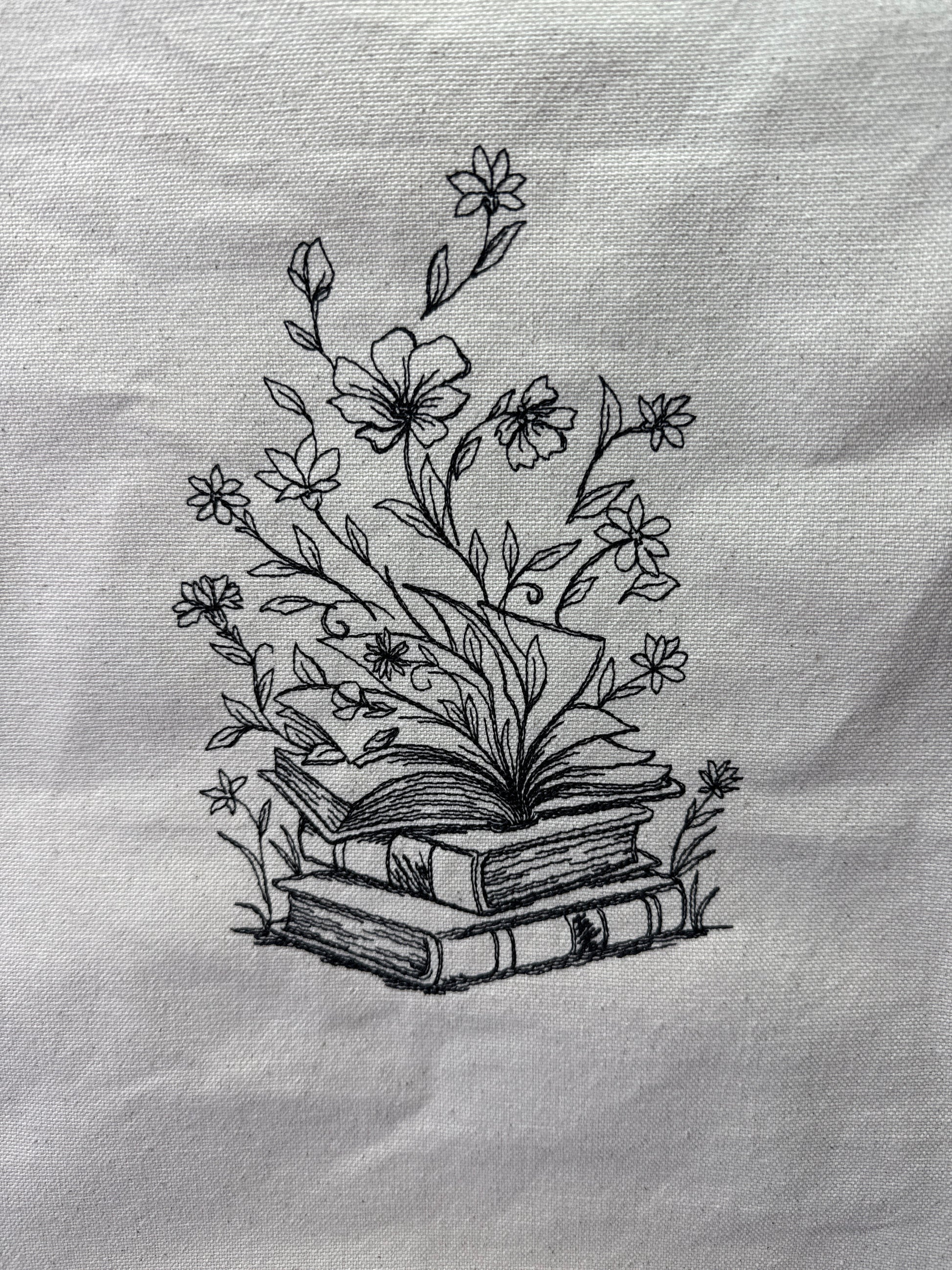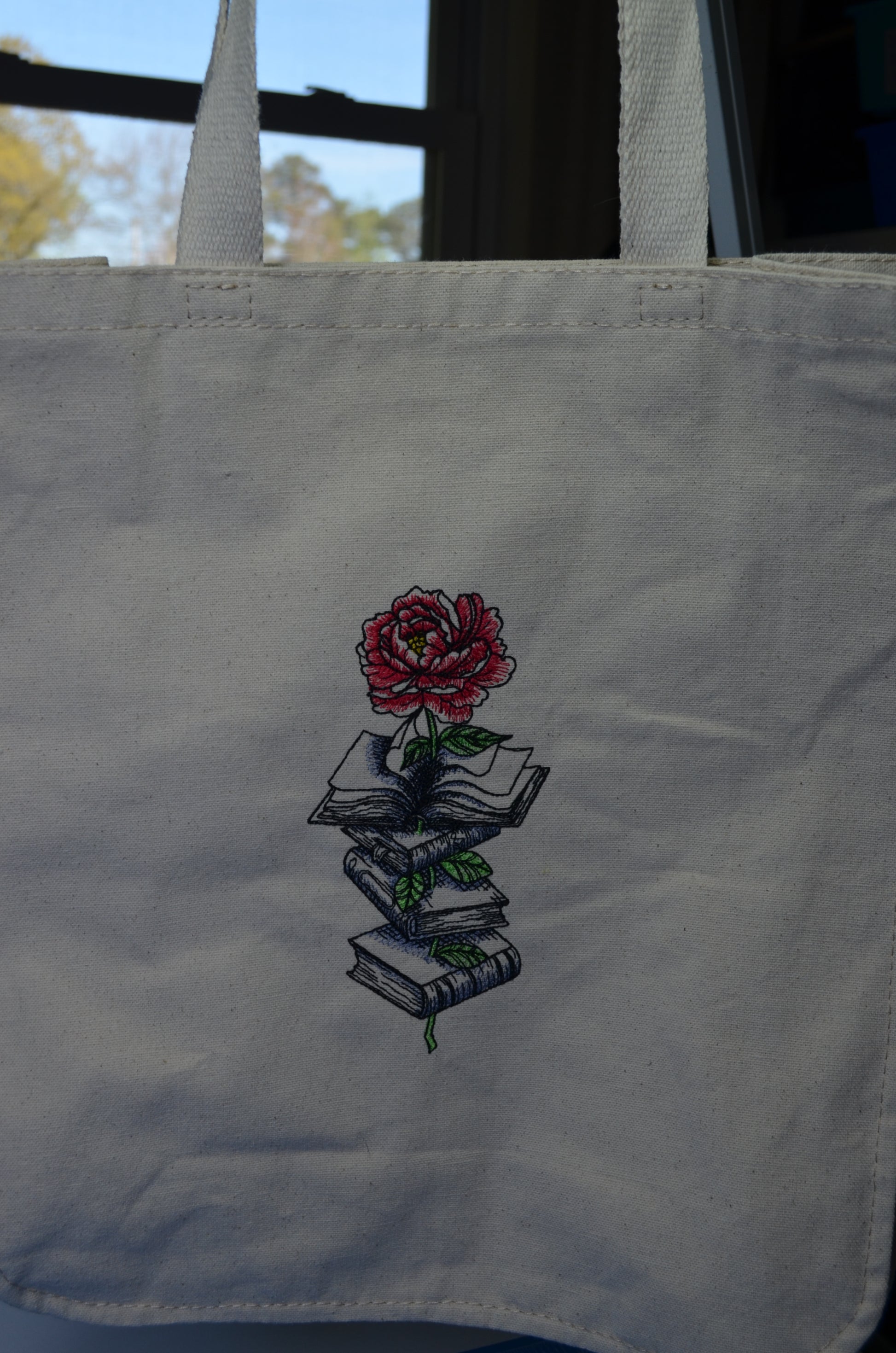 These handmade, embroidered tote bags are the perfect accessory for on-the-go. Each bag features a unique design, with most showcasing a book-themed embroidery image. Measuring 15 inches tall, 13 inches wide, and 5 inches deep, with handles just under 12 inches, these totes offer both style and practicality. Spacious enough for books, daily essentials, and more, each bag is a one-of-a-kind piece.